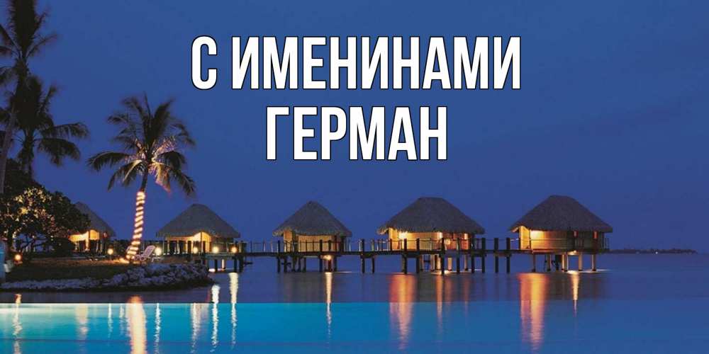 Открытка С именинами Герман. бунгалло на море. морское пожелание сладких снов