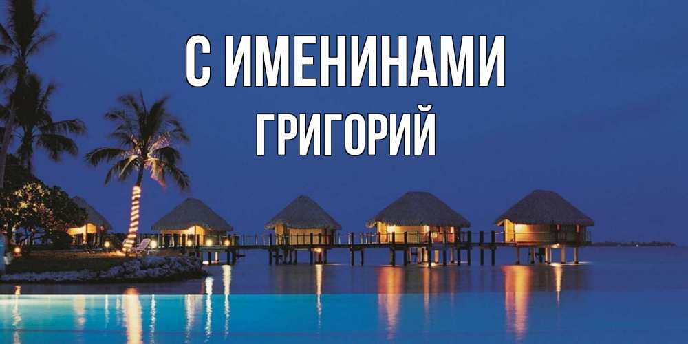 Открытка С именинами Григорий. бунгалло на море. морское пожелание сладких снов