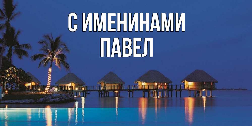 Открытка С именинами Павел. бунгалло на море. морское пожелание сладких снов
