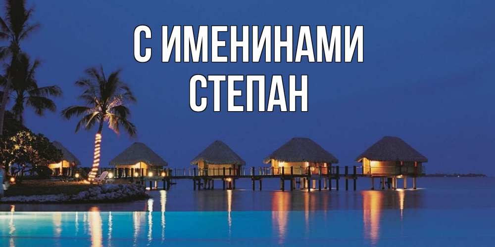 Открытка С именинами Степан. бунгалло на море. морское пожелание сладких снов