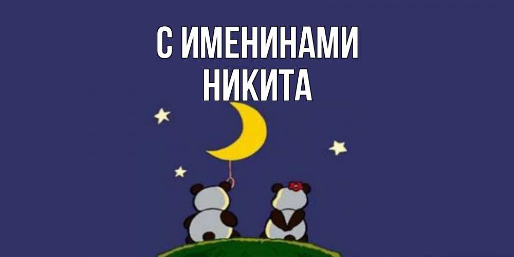 Открытка С именинами Никита. Две панды желают сладких снов. открытка с пожеланиями хорошо выспаться