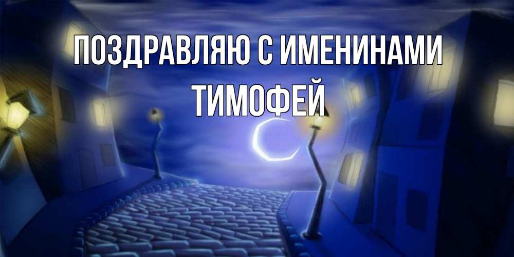 Открытка Поздравляю с именинами Тимофей. ночной город фонари луна и свет в окнах. сладких снов ночному городу