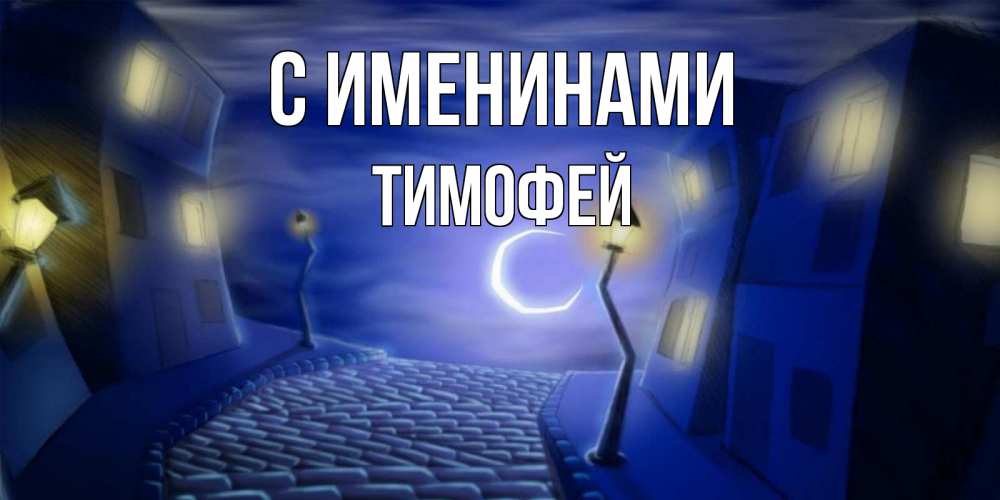 Открытка С именинами Тимофей. ночной город фонари луна и свет в окнах. сладких снов ночному городу
