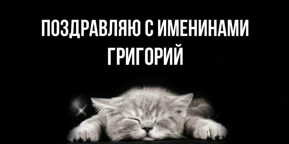 Открытка Поздравляю с именинами Григорий. кот сладко спит. спящий котик