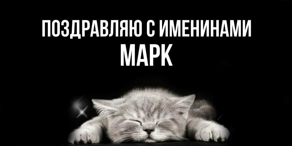 Открытка Поздравляю с именинами Марк. кот сладко спит. спящий котик