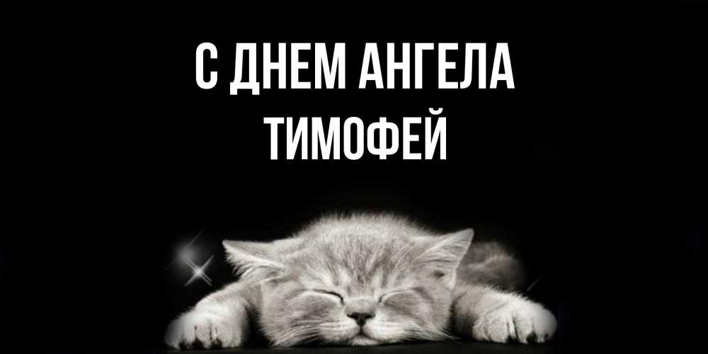 Открытка С днем Ангела Тимофей. кот сладко спит. спящий котик