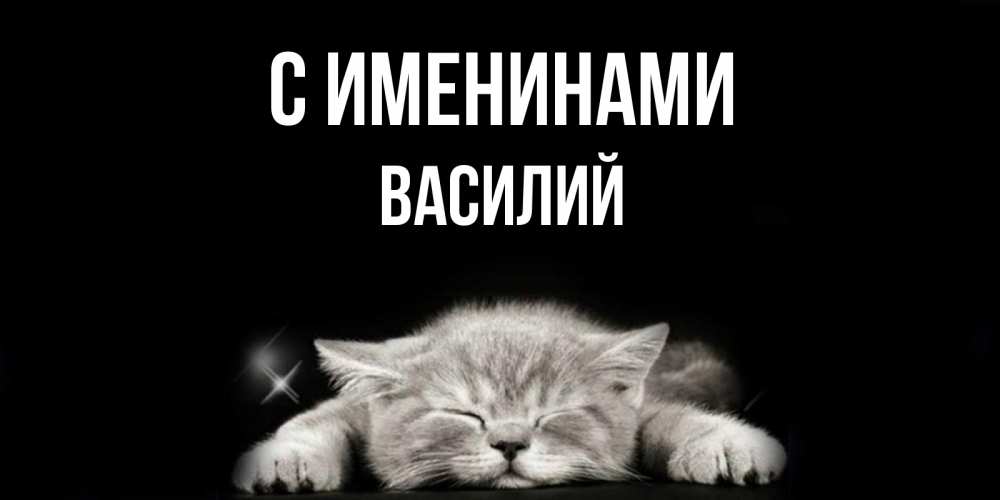 Открытка С именинами Василий. кот сладко спит. спящий котик