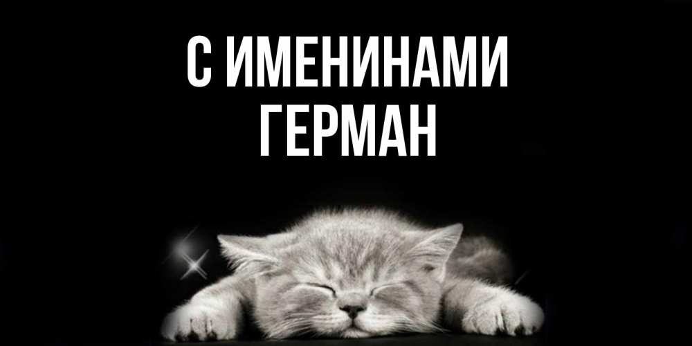 Открытка С именинами Герман. кот сладко спит. спящий котик