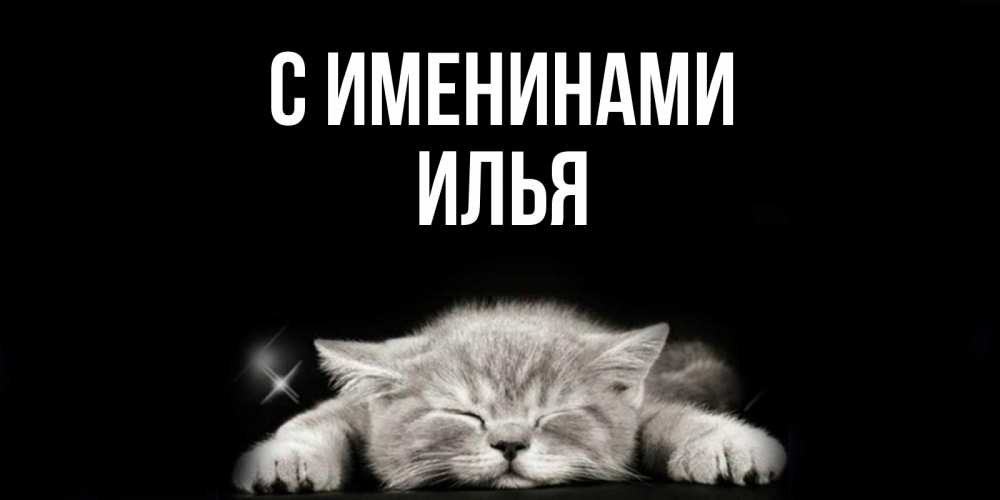Открытка С именинами Илья. кот сладко спит. спящий котик