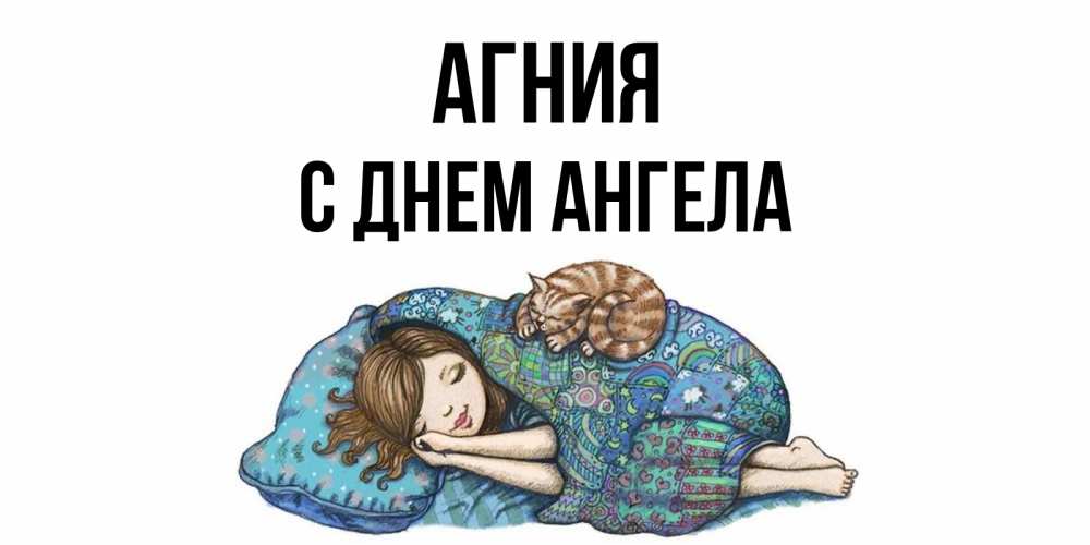 Открытка Агния С днем ангела. девочка спит с котом. пожелания сладких снов для подруги