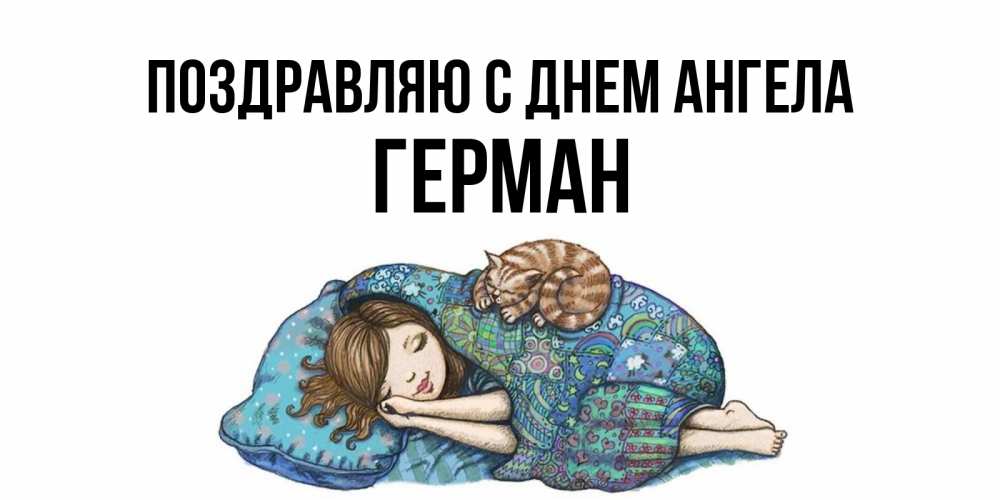 Открытка Поздравляю с днем Ангела Герман. девочка спит с котом. пожелания сладких снов для подруги