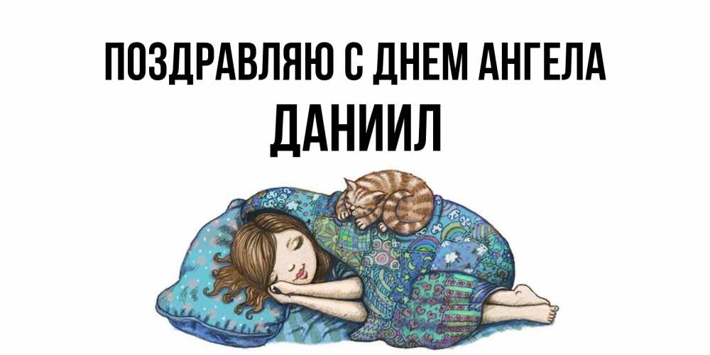 Открытка Поздравляю с днем Ангела Даниил. девочка спит с котом. пожелания сладких снов для подруги