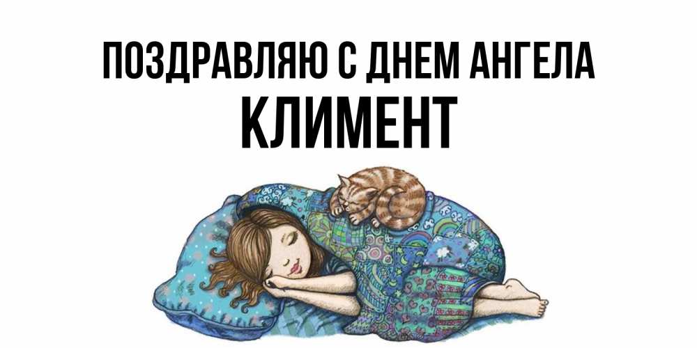 Открытка Поздравляю с днем Ангела Климент. девочка спит с котом. пожелания сладких снов для подруги