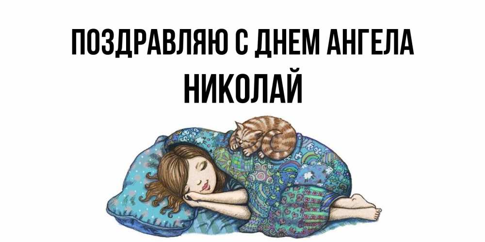Открытка Поздравляю с днем Ангела Николай. девочка спит с котом. пожелания сладких снов для подруги