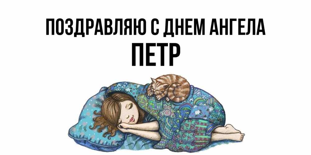 Открытка Поздравляю с днем Ангела Петр. девочка спит с котом. пожелания сладких снов для подруги