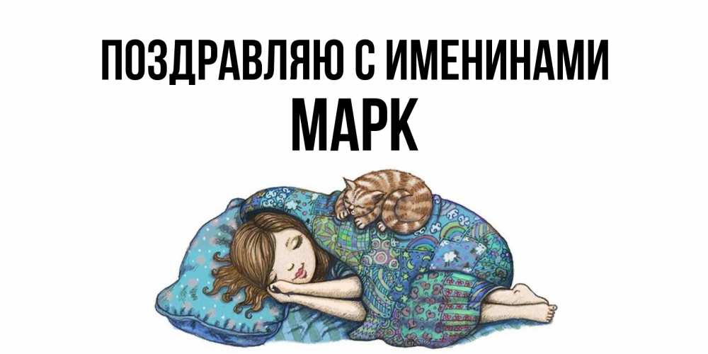 Открытка Поздравляю с именинами Марк. девочка спит с котом. пожелания сладких снов для подруги