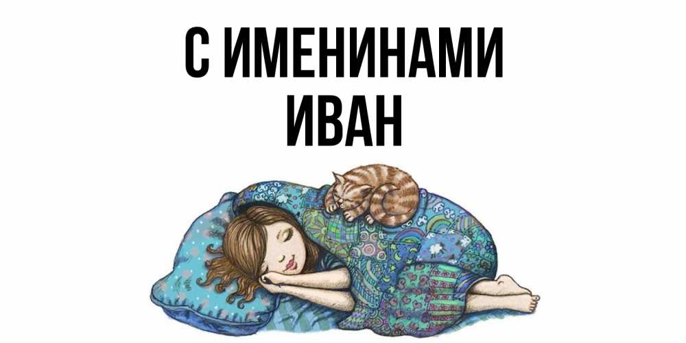 Открытка С именинами Иван. девочка спит с котом. пожелания сладких снов для подруги