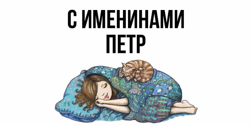 Открытка С именинами Петр. девочка спит с котом. пожелания сладких снов для подруги
