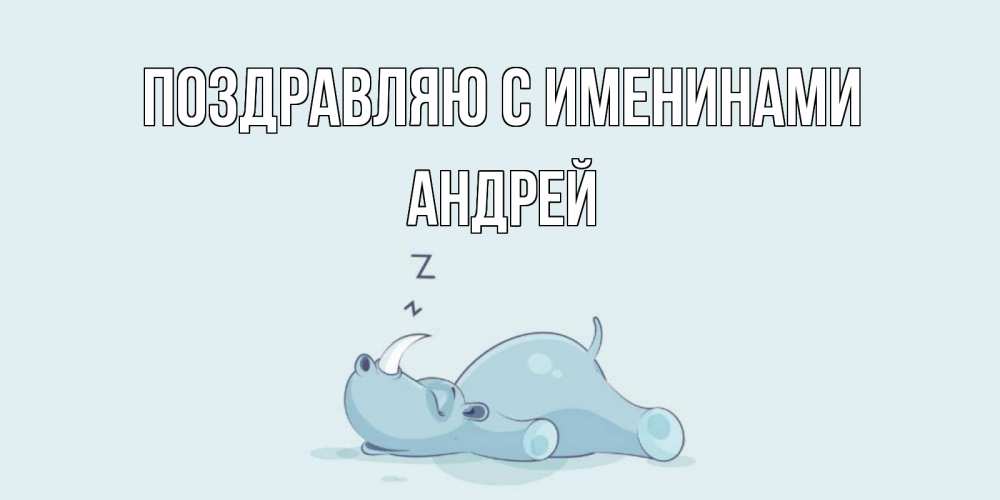 Открытка Поздравляю с именинами Андрей. носорог спт. сладких снов с носорогом