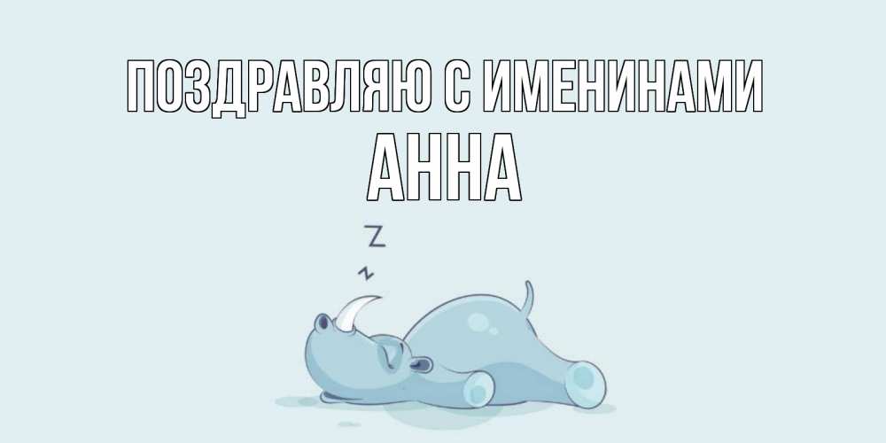 Открытка Поздравляю с именинами Анна. носорог спт. сладких снов с носорогом