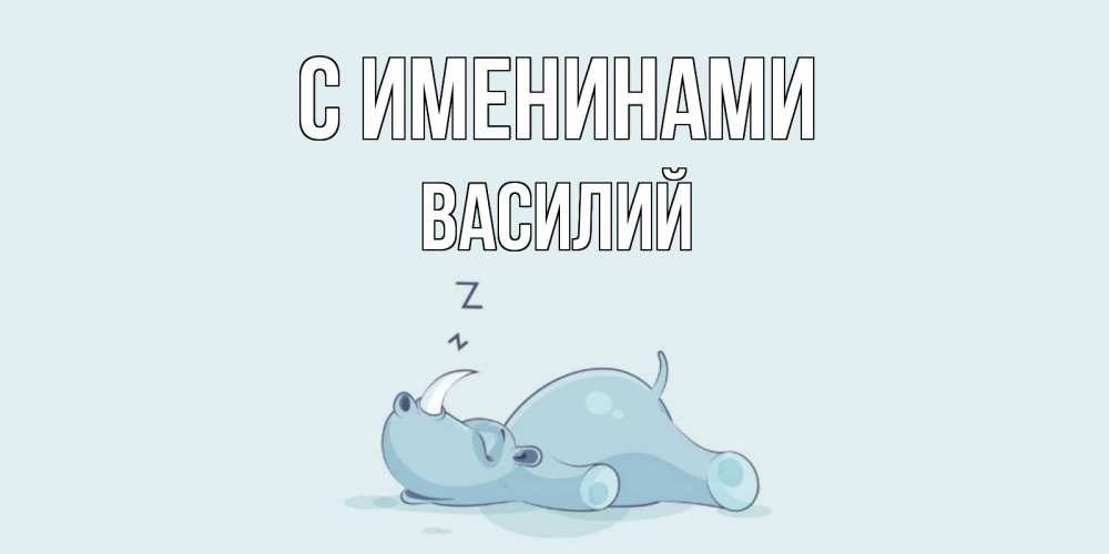 Открытка С именинами Василий. носорог спт. сладких снов с носорогом