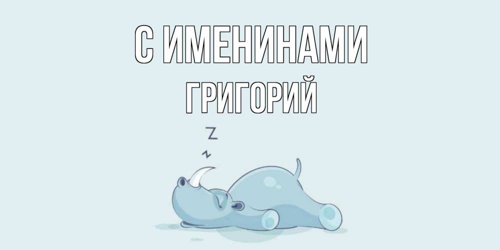 Открытка С именинами Григорий. носорог спт. сладких снов с носорогом