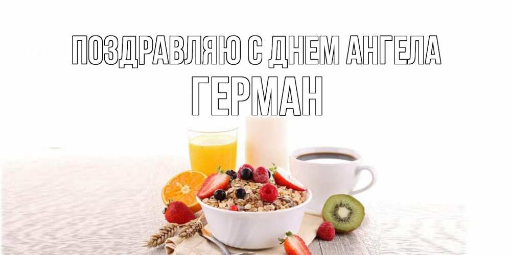 Открытка Поздравляю с днем Ангела Герман. Доброе утро полезный завтрак. открытка с пожеланием добрейшего утречка