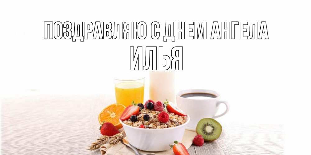 Открытка Поздравляю с днем Ангела Илья. Доброе утро полезный завтрак. открытка с пожеланием добрейшего утречка