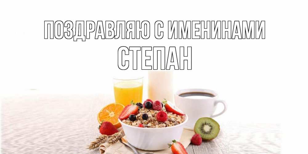 Открытка Поздравляю с именинами Степан. Доброе утро полезный завтрак. открытка с пожеланием добрейшего утречка