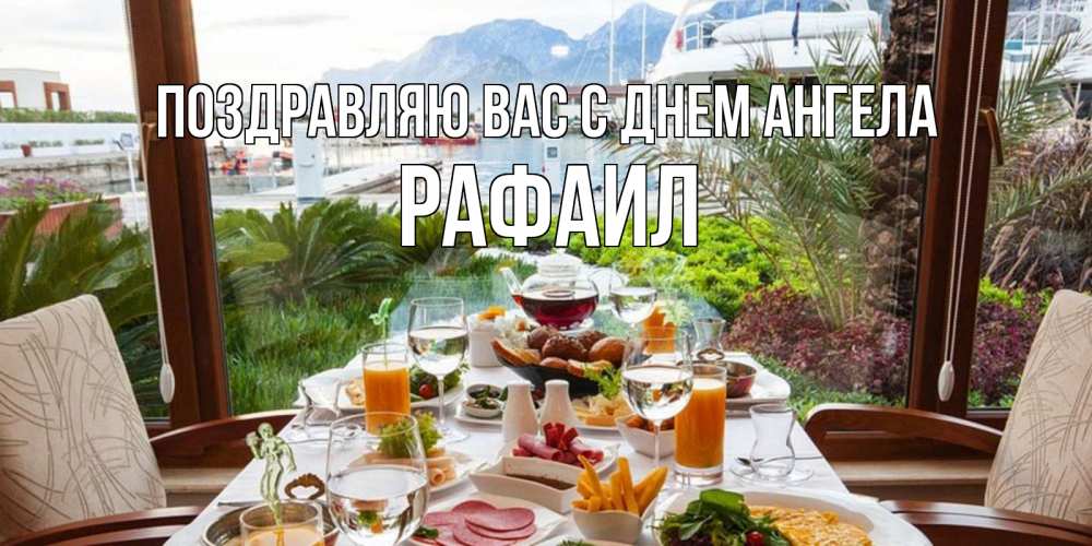 Открытка Поздравляю Вас с днем Ангела Рафаил. доброе утро на отдыхе. тропическое утро