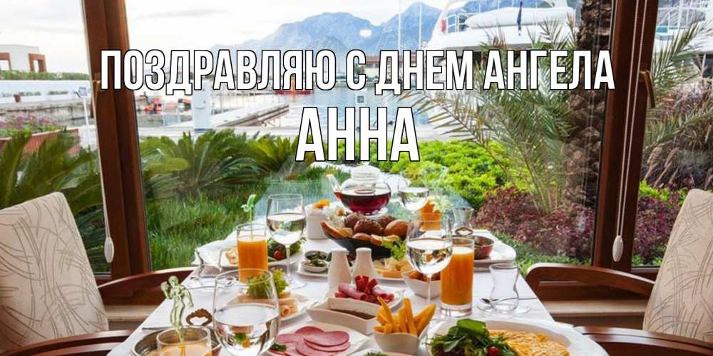 Открытка Поздравляю с днем Ангела Анна. доброе утро на отдыхе. тропическое утро