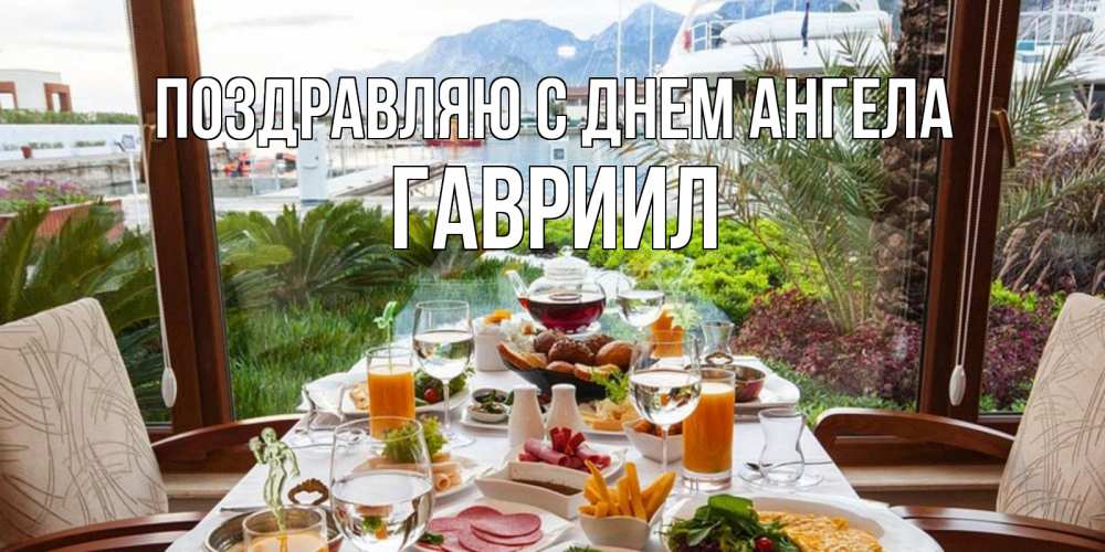 Открытка Поздравляю с днем Ангела Гавриил. доброе утро на отдыхе. тропическое утро