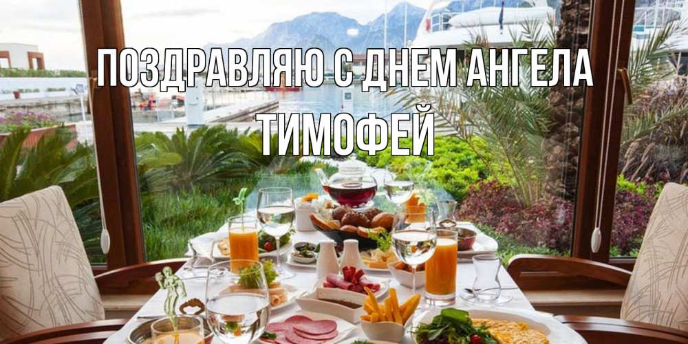 Открытка Поздравляю с днем Ангела Тимофей. доброе утро на отдыхе. тропическое утро