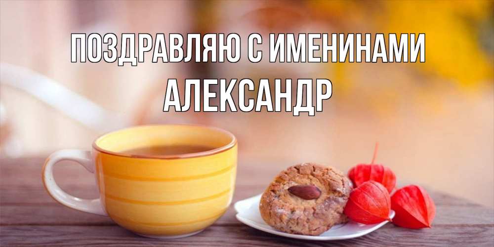 Открытка Поздравляю с именинами Александр. полезная еда на завтрак. добрейшее утречко с кофе