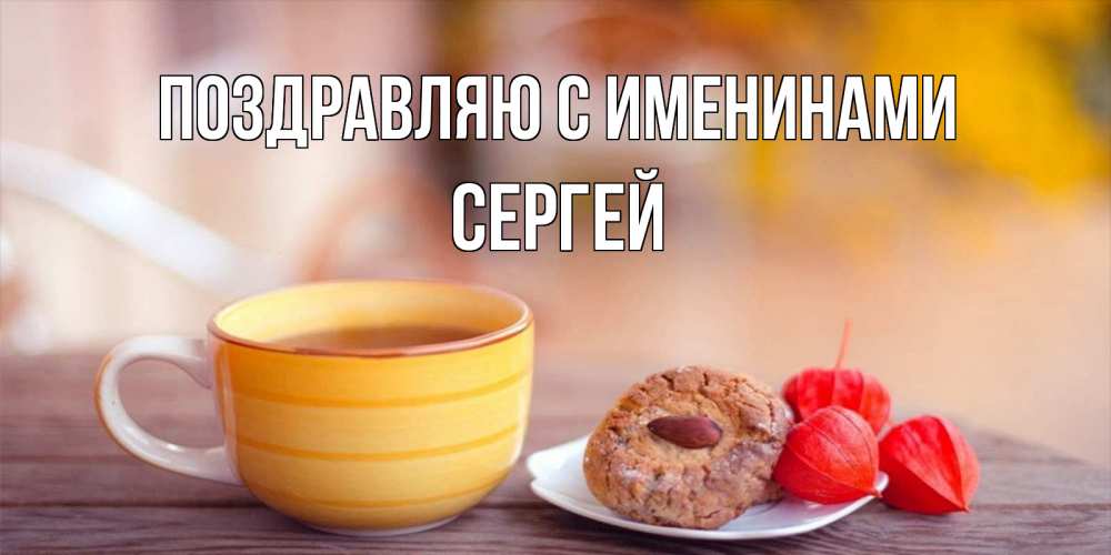 Открытка Поздравляю с именинами Сергей. полезная еда на завтрак. добрейшее утречко с кофе
