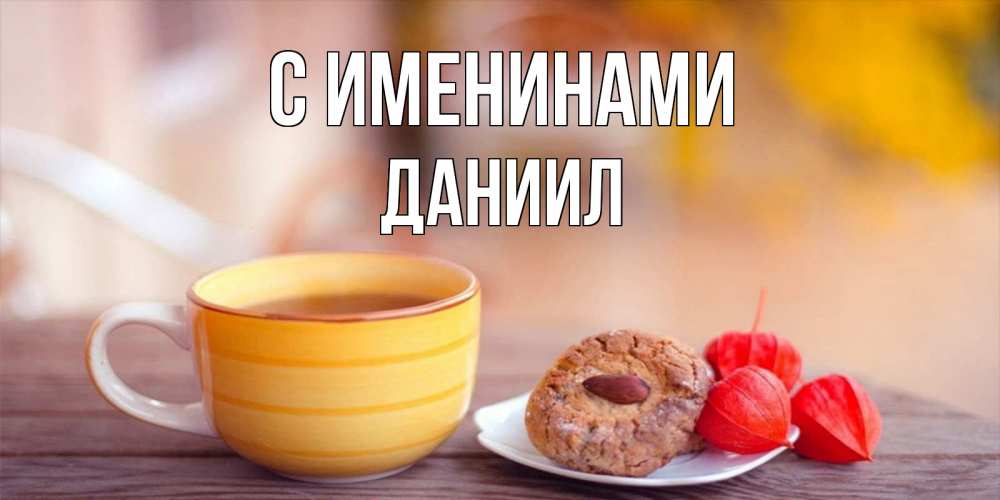Открытка С именинами Даниил. полезная еда на завтрак. добрейшее утречко с кофе