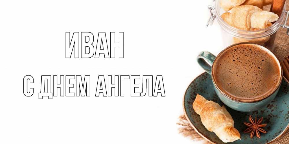 Открытка Иван С днем ангела. кофе и булочка на утро. кофе с пенкой