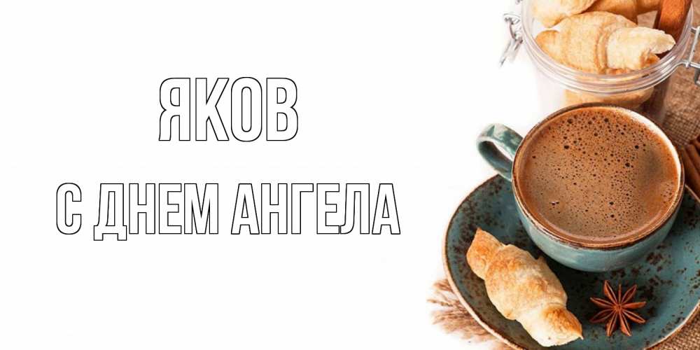 Открытка Яков С днем ангела. кофе и булочка на утро. кофе с пенкой