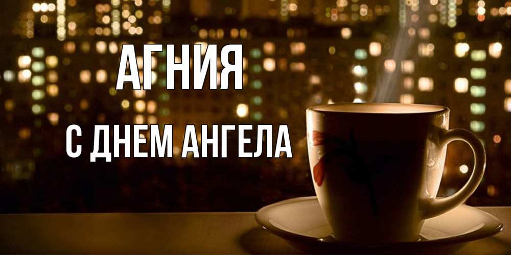 Открытка Агния С днем ангела. кружка кофе для поднятия настроения. утрешнее настроение