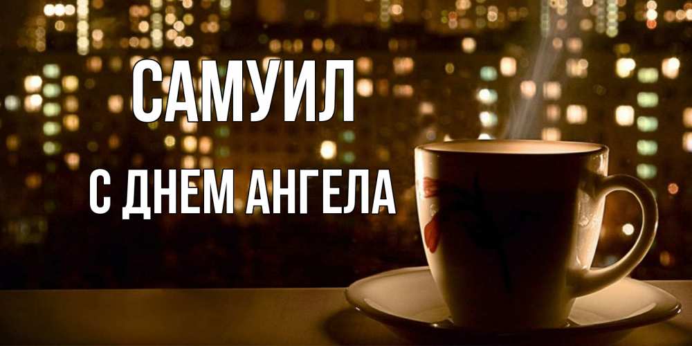 Открытка Самуил С днем ангела. кружка кофе для поднятия настроения. утрешнее настроение