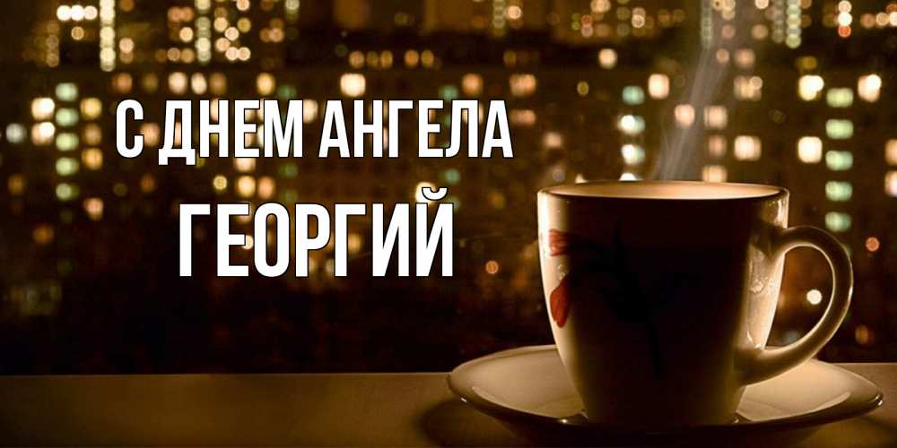 Открытка С днем Ангела Георгий. кружка кофе для поднятия настроения. утрешнее настроение