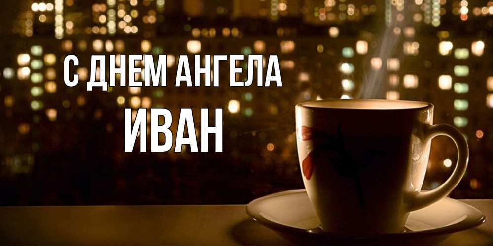 Открытка С днем Ангела Иван. кружка кофе для поднятия настроения. утрешнее настроение
