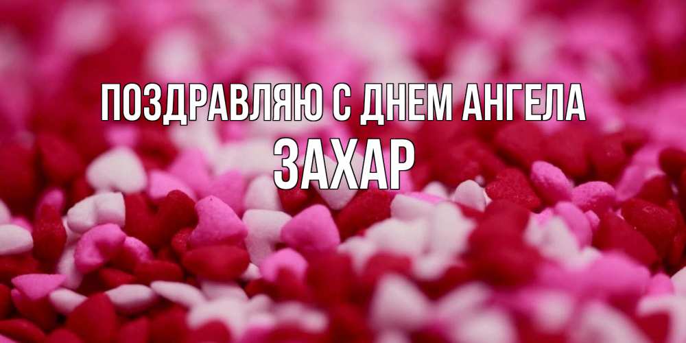 Открытка Поздравляю с днем Ангела Захар. Люблю тебя с сердечками разного цвета. красивая открытка с признанием в любви