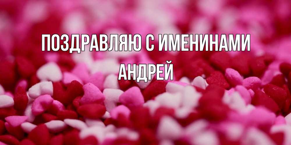Открытка Поздравляю с именинами Андрей. Люблю тебя с сердечками разного цвета. красивая открытка с признанием в любви