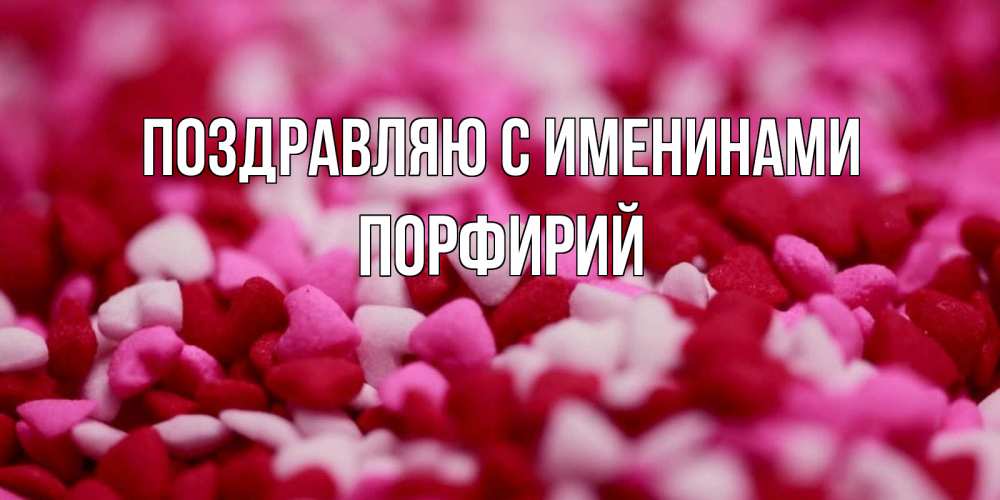 Открытка Поздравляю с именинами Порфирий. Люблю тебя с сердечками разного цвета. красивая открытка с признанием в любви