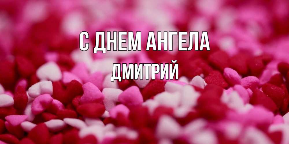 Открытка С днем Ангела Дмитрий. Люблю тебя с сердечками разного цвета. красивая открытка с признанием в любви
