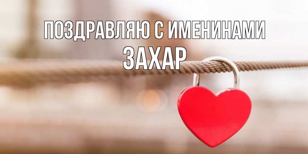 Открытка Поздравляю с именинами Захар. сердечко на замочке. верность и любовь