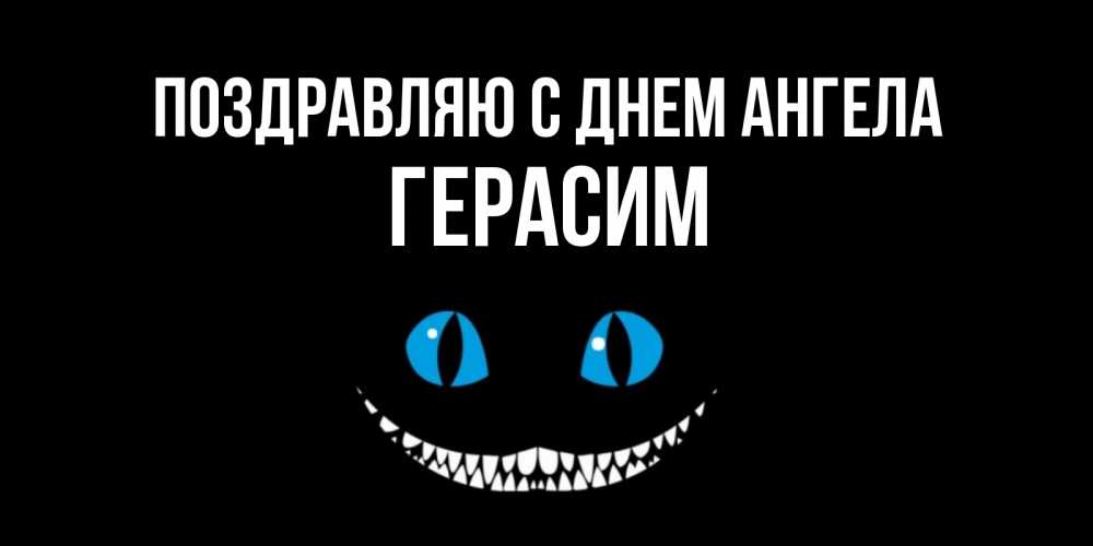 Открытка Поздравляю с днем Ангела Герасим. улыбнись чеширский кот. кот улыбается