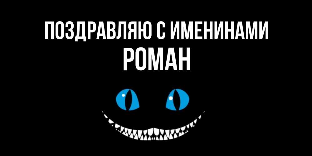 Открытка Поздравляю с именинами Роман. улыбнись чеширский кот. кот улыбается