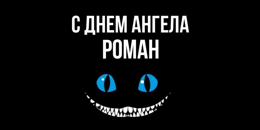 Открытка С днем Ангела Роман. улыбнись чеширский кот. кот улыбается